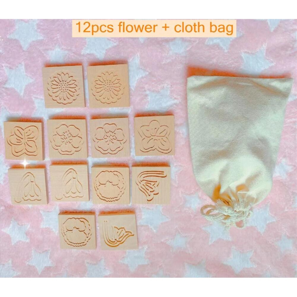 12pcs/set Wooden Montessori Leaf Flower Drawing Stamp Open Toy Printing Template Mud Sand Childrens Gift Wooden Toys