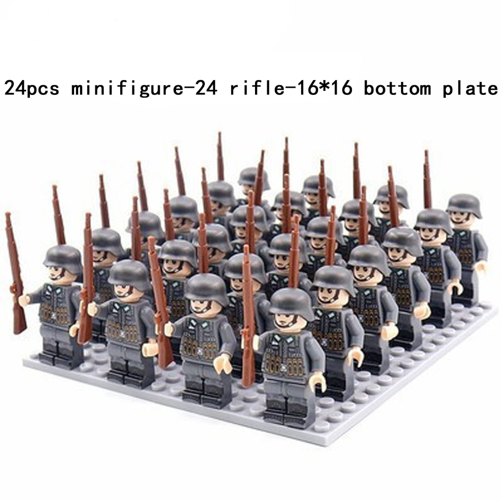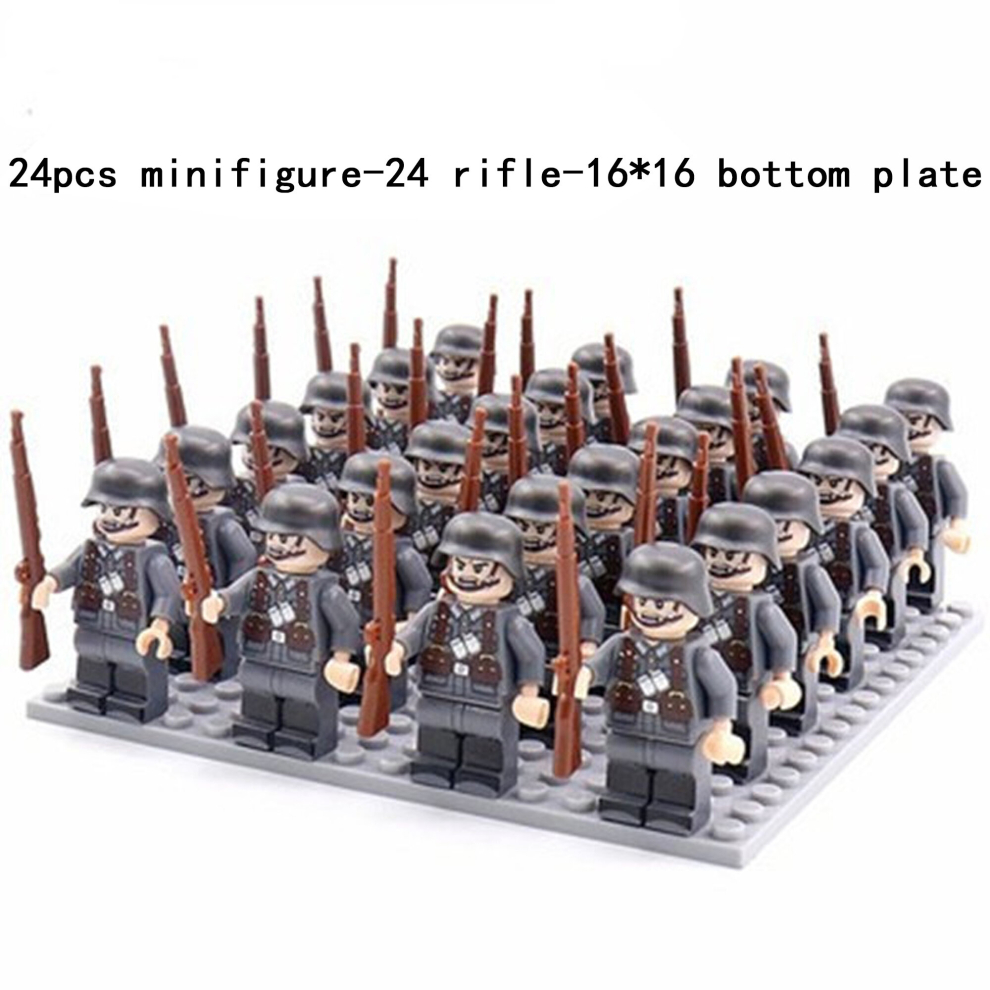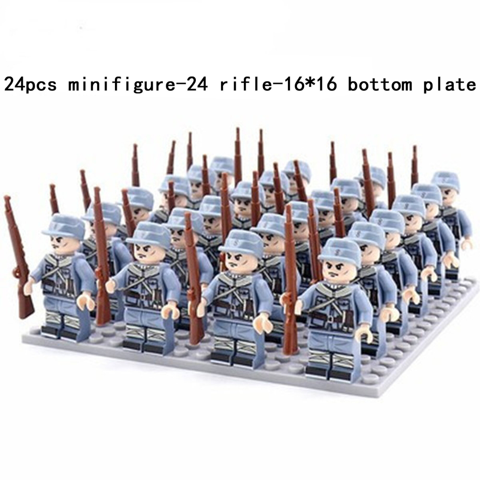 (A-24pcs) Minifigures Military Building Blocks 24pcs Eight-nation Phalanx Rifle Models Accessories Sand Tables Military Games Children's Toys 16*16
