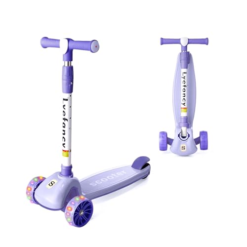 Lyefancy Kids Scooter for 2-10 Years Old Boys Girls, 3 Wheel Toddler Scooter, Childrens Folding Kick Scooter, Light up Wheels, Adjustable Height, Lean to Steer, Extra-Wide Deck (Purple)