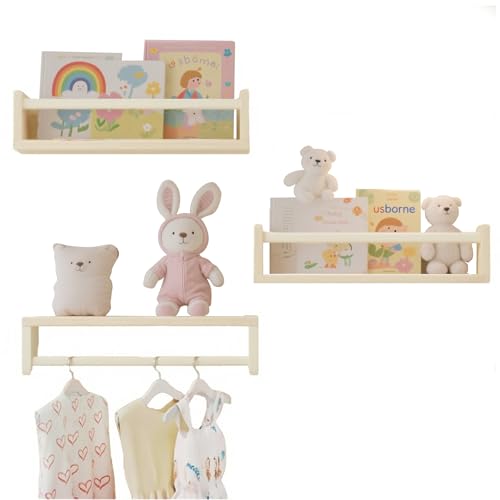 ZONJIE Nursery Shelves Set of 3-16.5 Inch Baby Floating Bookshelf, Wood Wall Mounted Children’S Book Shelves for Kids Nursery Decor, Hanging kids Furniture for Toy Storage and Playroom, Kids Room