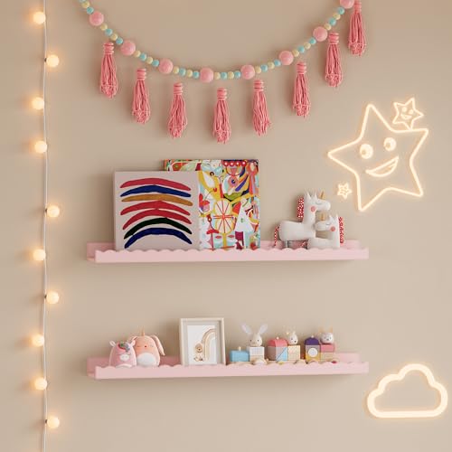 [en.casa] Wall shelf for children Vestnes Floating Children's room shelves in a set of 2 in wave design Hanging bookshelf 40 x 10 x 10 cm rectangular Cotton Candy