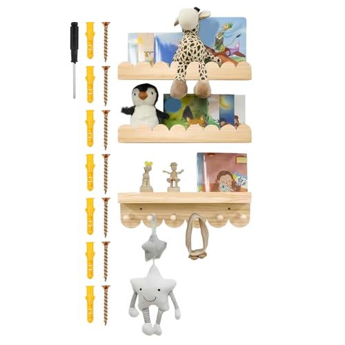 manhegari Children's Book Storage Shelves,Wooden Space Saving Organization,Floating Bookshelves for Kids - for Family Children Boy Indoor Home Study School