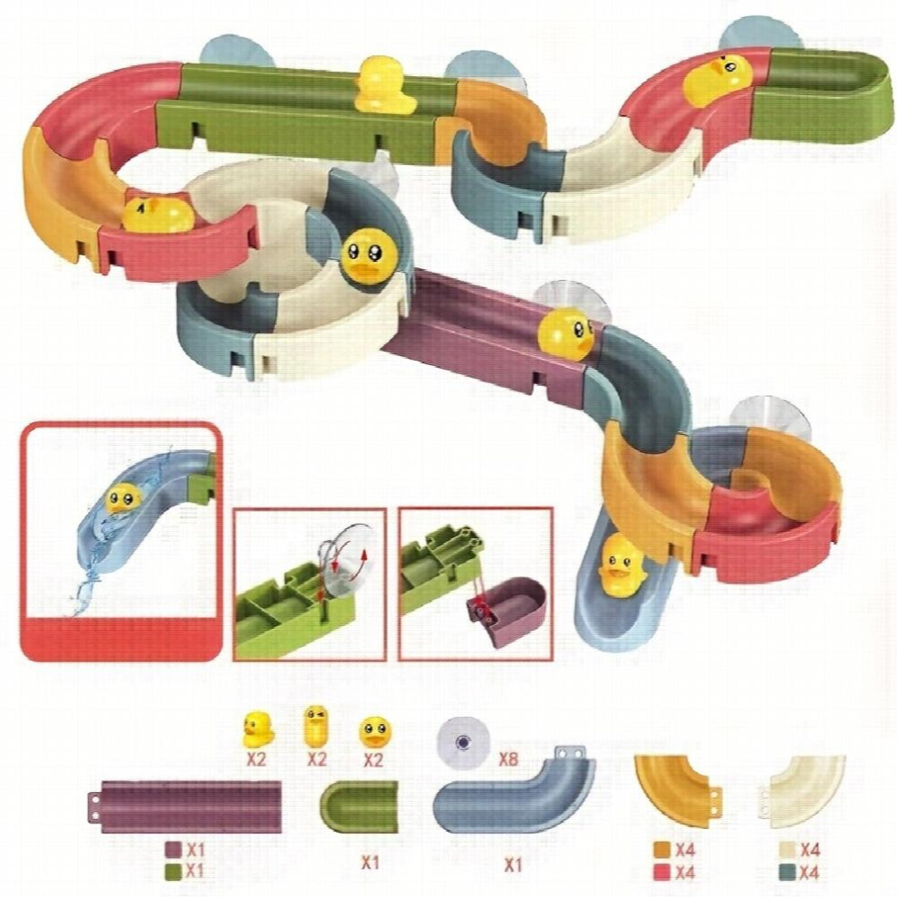 34pcs Childrens Bathroom Water Play Toys Baby Bath DIY Track Ball Sliding Fun Game Childrens Bath Slide Toys For Boys And Girls Holiday Birthday Gif
