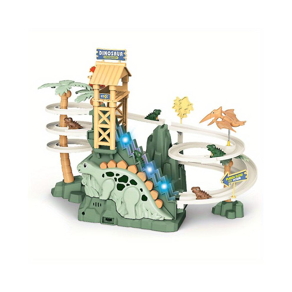 (green) Stair Climbing Sound And Light Electric Staircase Small Dinosaur Track Sliding Double Track Slide Childrens Toy