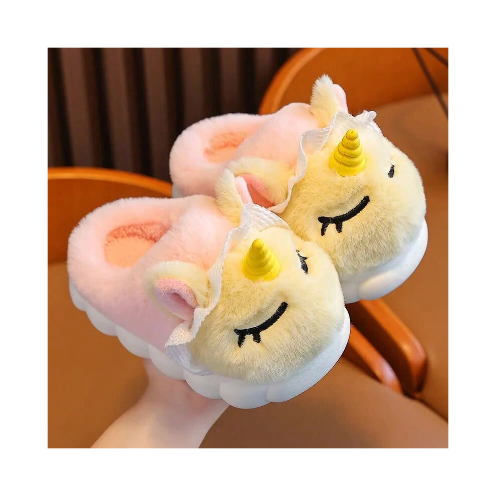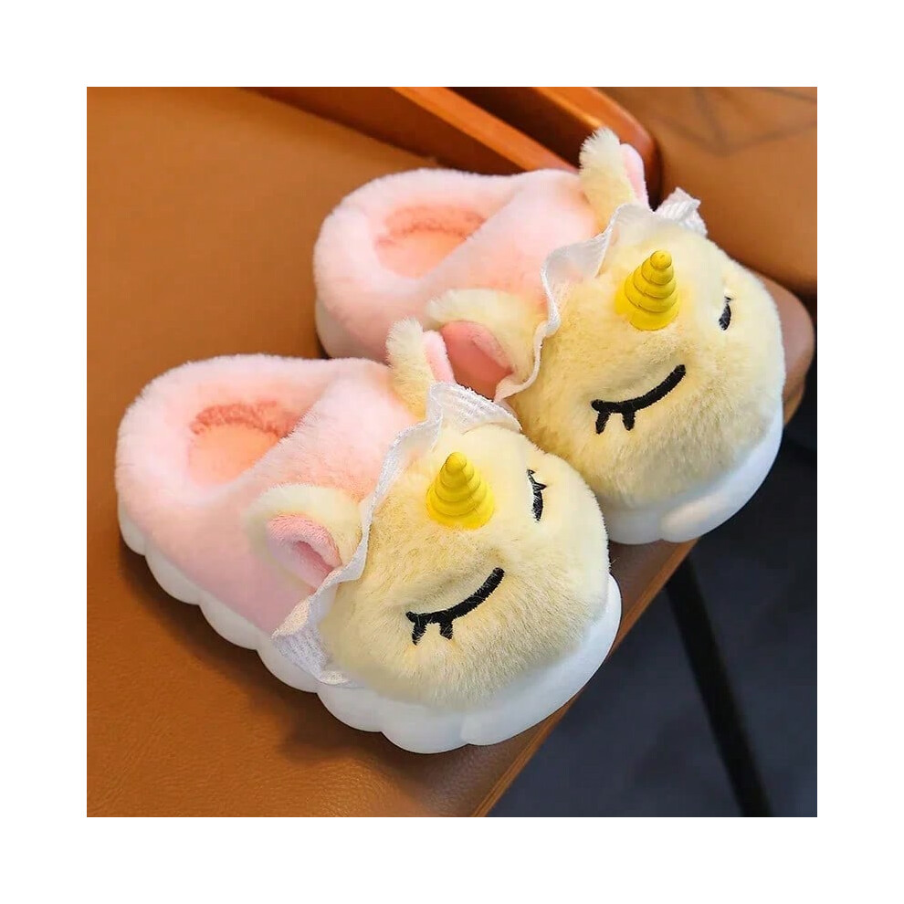 (Pink, 22-23) New Winter Kids Plush Slippers Cartoon Unicorn Children's Indoor Slides Non-Slip Soft Mule Girls Boys Warm House Cotton Shoes