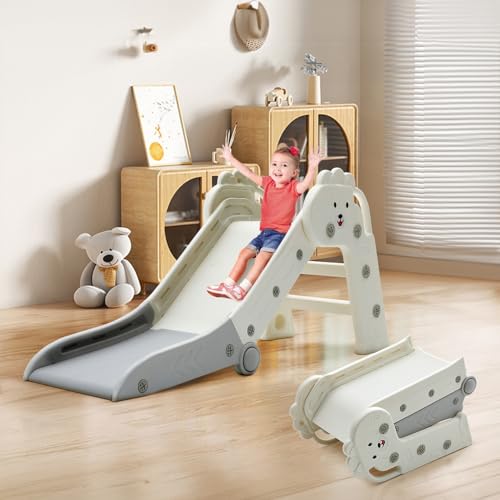 FUKEA Lion Slide for Toddlers Age 1 to 3 Years, Indoor Outdoor Folding Slide for Kids, Children's Garden Slides with Climbing Frame Stairs, Cute Freestanding Baby Slides