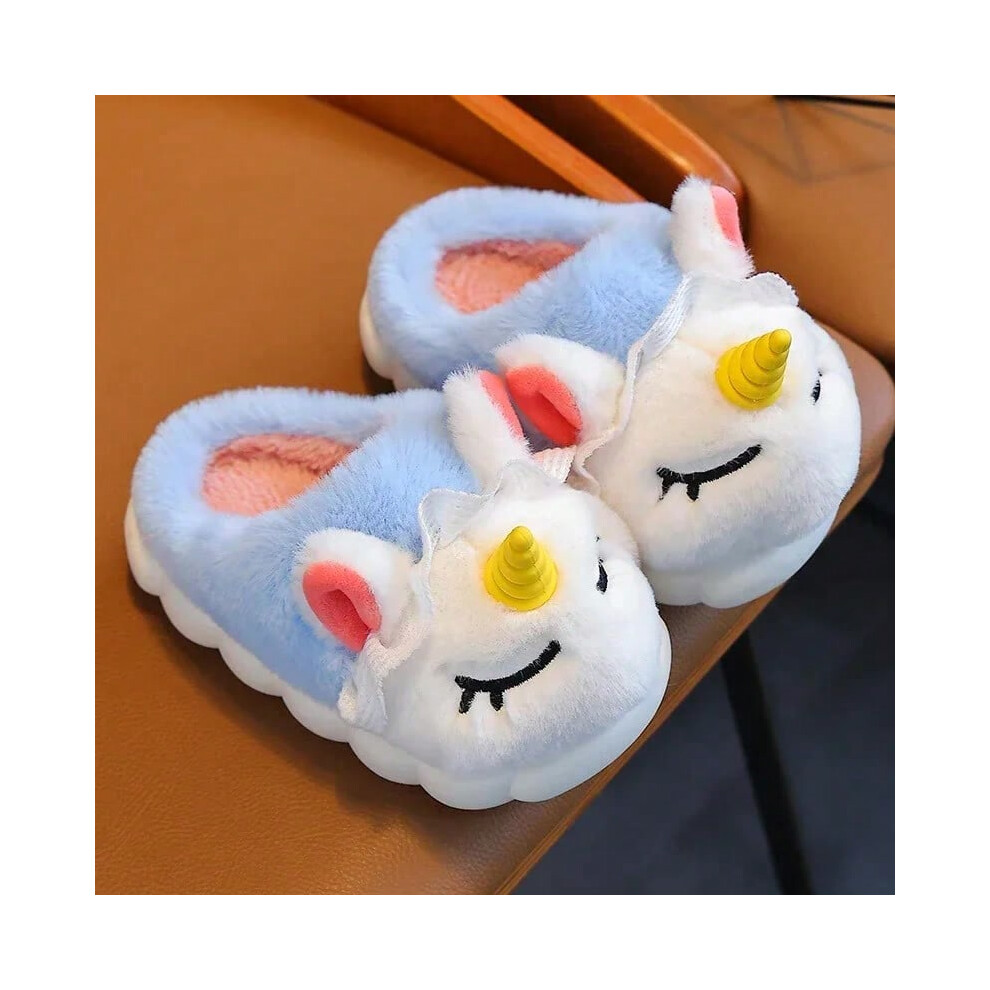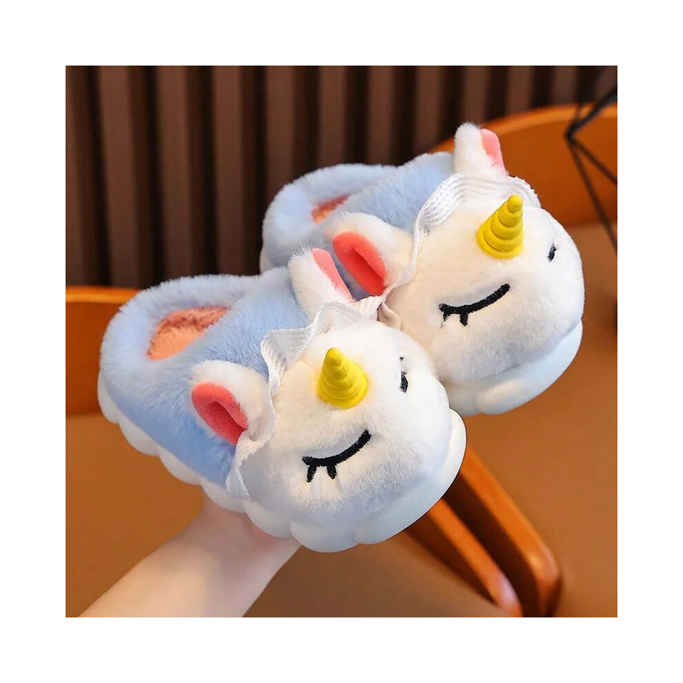 (SKY BLUE, 22-23) New Winter Kids Plush Slippers Cartoon Unicorn Children's Indoor Slides Non-Slip Soft Mule Girls Boys Warm House Cotton Shoes