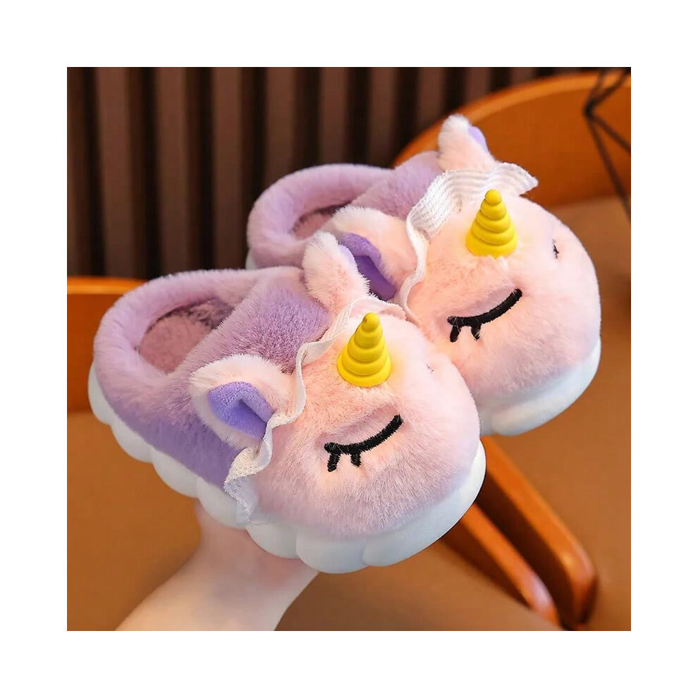 (Purple, 26-27 insole 16.5cm) New Winter Kids Plush Slippers Cartoon Unicorn Children's Indoor Slides Non-Slip Soft Mule Girls Boys Warm House Cotton