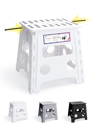 HOUSE DAY Folding Step Stool 13 inch(33cm) Height Medium Heavy Duty Foldable Stool for Adults, Large Foldable Children's Step Stool Non-Slip Folding Stools Portable Plastic Stools for Kids - White