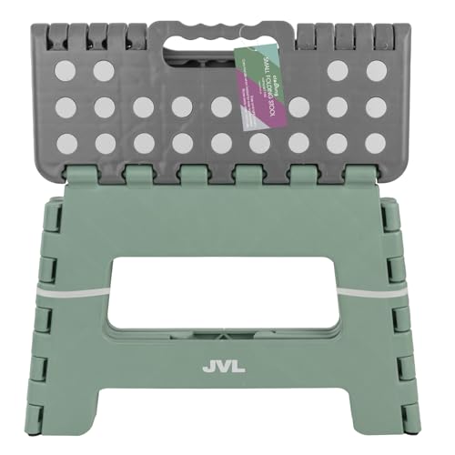 JVL Small Folding Step Stool – Lightweight, Kitchen, Bathroom, Children’s Step Stool – Green