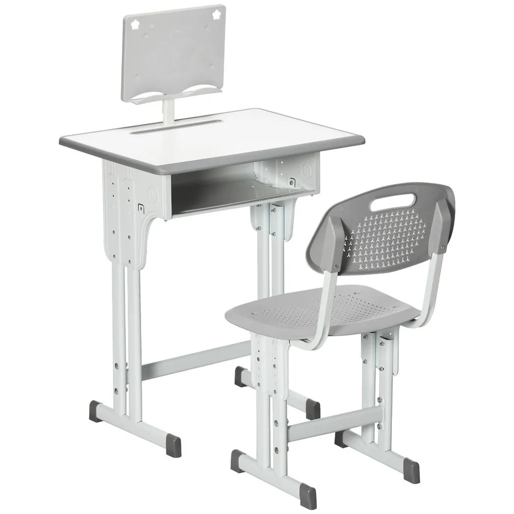 Kids Desk and Chair Set Childrens Adjustable Height Study Table Book Stand Grey