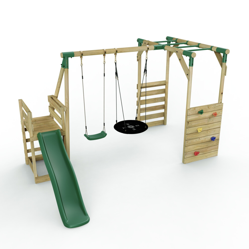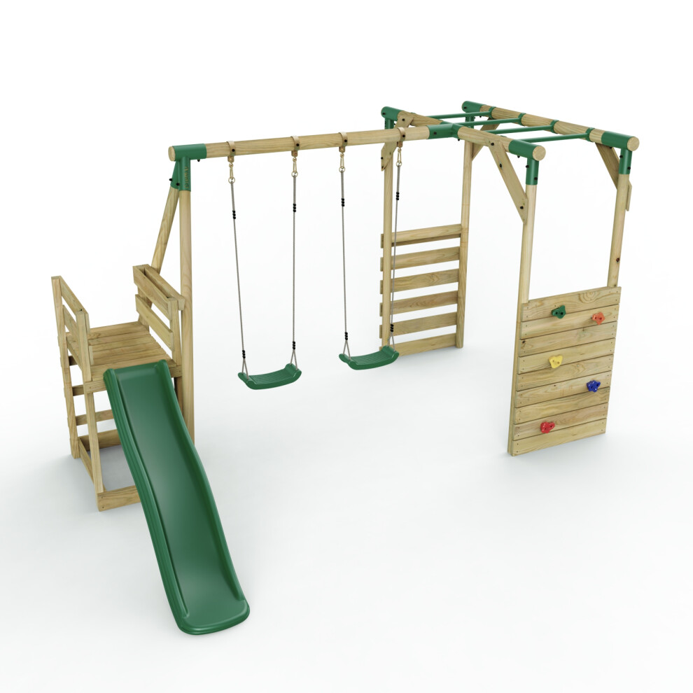 (Monkey Bars plus Deck & 6ft Slide - Venus, Green) Rebo Wooden Children's Swing Set with Monkey Bars plus Deck & 6ft Slide