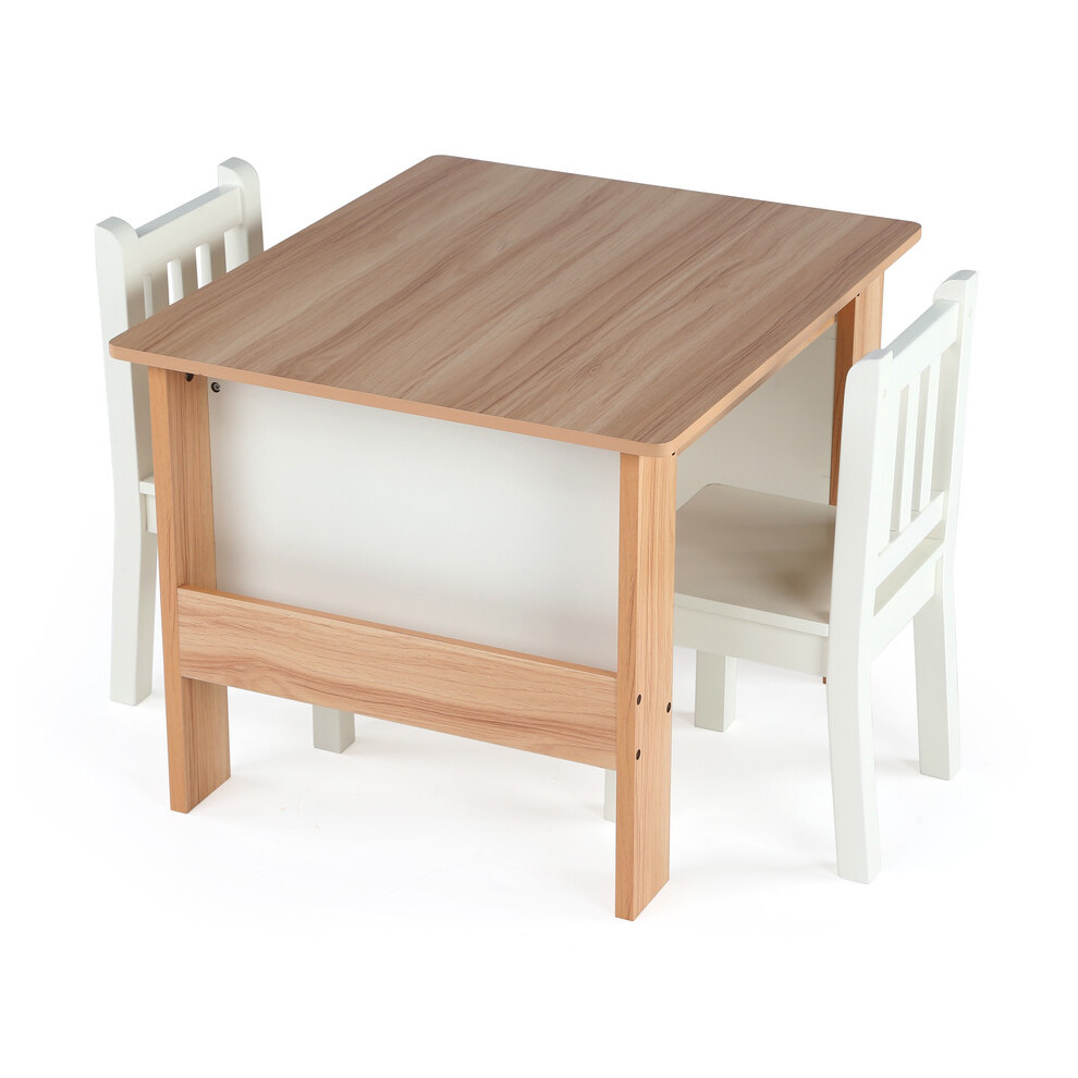 Lestarain Children's Table and Chairs with Reversible Top, 3 Storage Spaces, 2 Chairs, Blackboard, Suitable for Children's Room, Nursery, Playground,