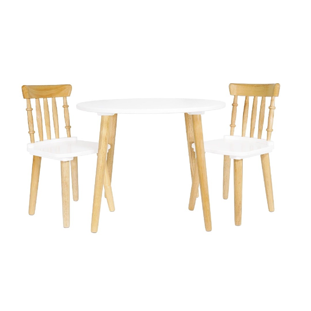 Panana Wooden Children's Table and 2 Chairs Set, 55H x 60W x 60D cm, Natural White