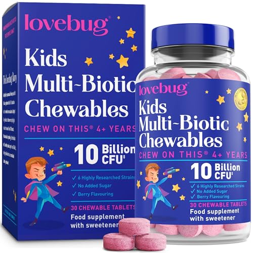 Lovebug Kids Probiotic Chewables - 10 Billion CFU with Prebiotics - Friendly Bio Cultures for Children & Toddlers (Age 4+) - 30 Chewable Berry Flavour Tablets - Gentle Support for Childrens Gut Health
