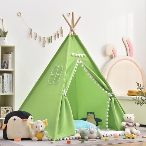 JORCEDI Kids Teepee Tent, Foldable Play Tent Canvas Childrens Tents,Play Tents Indoor Outdoor for Boy and Girls,Unique Reinforcement Part,for Outdoor Garden,Party Birthday (180cm,Grün)