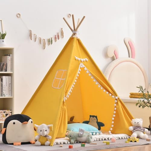 Kids Teepee Tent High110cm Teepee Unique Reinforcement Part-Foldable Play Tent Canvas Childrens Tents,Wigwam Tipi Play House, Gifts And Surprises For Boys And Girls (110cm,Yellow)
