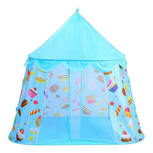 JORCEDI Kids Teepee Tent, Foldable Play Tent Canvas Childrens Tents,Play Tents Indoor Outdoor for Boy and Girls,Unique Reinforcement Part,for Outdoor Garden,Party Birthday (135cm,Blau)