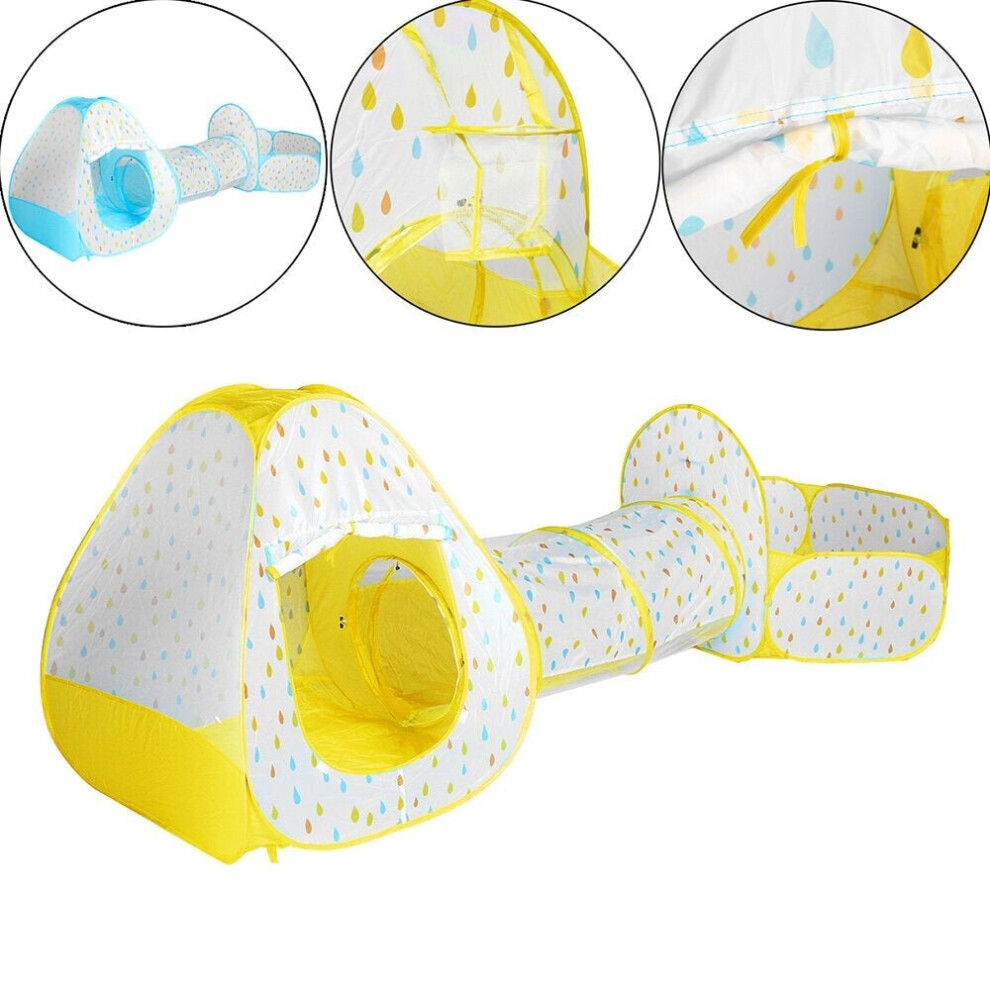 () 3 In 1 Yellow/Blue Play Ball Pool Crawling Tunnel Folding Tent for Children's Games