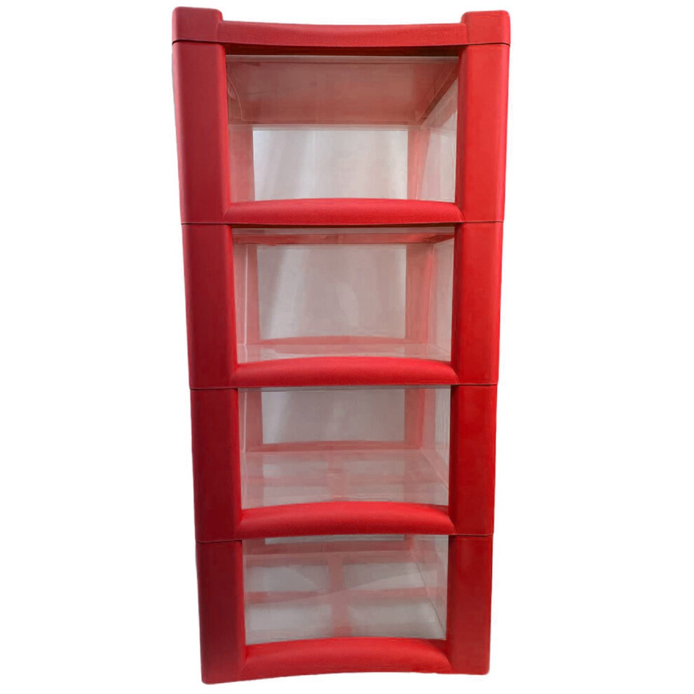 4 Drawer Large Plastic Storage Drawer Tower Perfect for Schools, Offices and Children's Toys Storage Solution (Red)