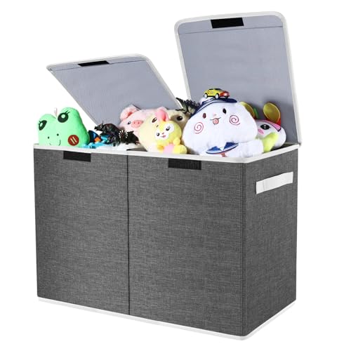 Linkmonde Toy Storage Box with Lid & Handle - Foldable Kids Toy Chests & Boxes, Toy Storage Organiser Chest With Divider(58X30X39CM), Childrens Storage Box for Kid's Toys,Clothes, Nursery (Gray)