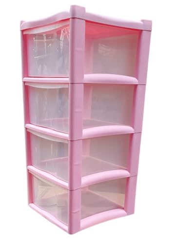4 Drawer Large Plastic Storage Drawer Tower Perfect for Schools, Offices and Children's Toys Storage Solution (Pink)