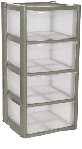 4 Drawer Large Plastic Storage Drawer Tower Perfect for Schools, Offices and Children's Toys Storage Solution (Grey)