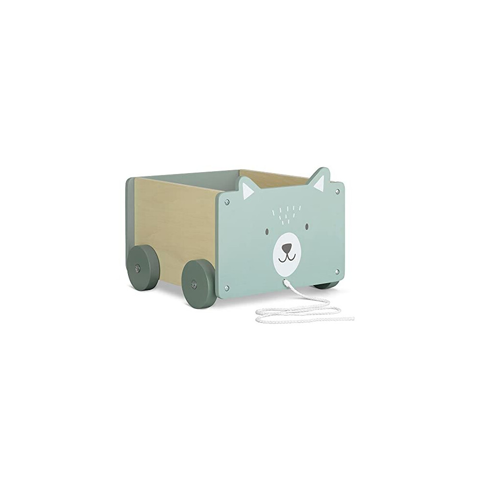 Navaris Kids Toy Box - Polar Bear Wooden Chest for Childrens, Boys, Girls Toys with Wheels - Unisex Children Toy and Games Bedroom Storage Trunk 18M+