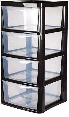 4 Drawer Large Plastic Storage Drawer Tower Perfect for Schools, Offices and Children's Toys Storage Solution (Black)