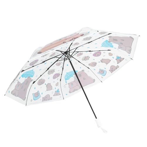 Genérico Children's Umbrella Capibara Transparent Drawings – Compact Folding Open Automatic Close 3 Fold Umbrella | Lightweight Waterproof Umbrella for Boys Girls Rainy Day & Travel