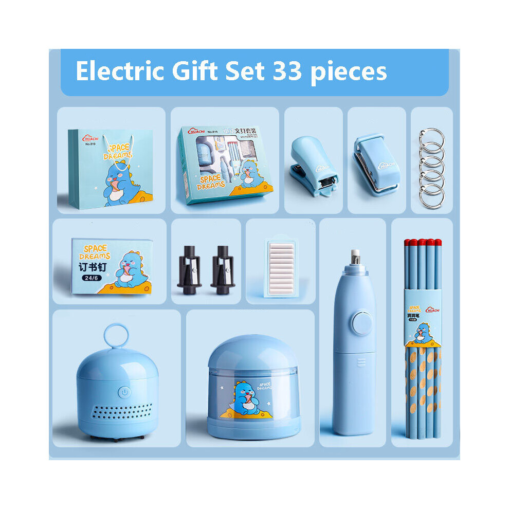 (Blue) Stationery Set Children's Electric Pencil Sharpener Electric Eraser Electric Vacuum Cleaner Cleaning Combination Student Spree