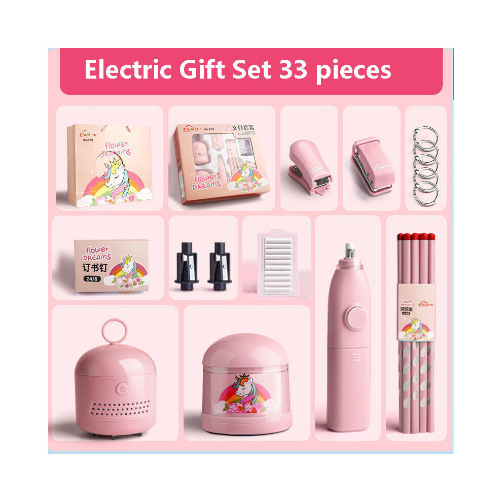 (Pink) Stationery Set Children's Electric Pencil Sharpener Electric Eraser Electric Vacuum Cleaner Cleaning Combination Student Spree