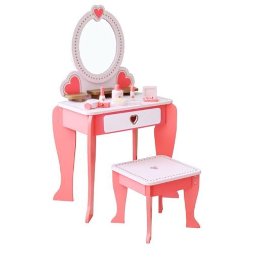 Knowlife Play Vanity,Wooden Dressing Table with Mirror - Pretend Play Girls Vanity with Comb and Cosmetics - for Birthday Christmas Salon Studio Home Children's Room