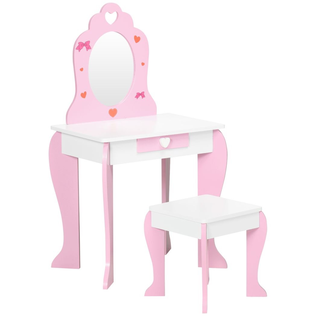 Girls Vanity Table & Stool Childrens Dressing Set Make Up Desk with Mirror