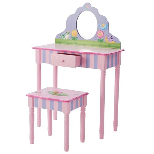 Fantasy Fields By Teamson Childrens Play Wooden Vanity Table, Stool Set & Mirror TD-13245A