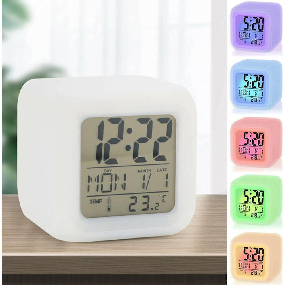 Children's LED Clock with 7 Colors Night Light, Multifunctional Children Alarm Clock Featuring Silent Wake-Up and Temperature Display, Large Screen Di