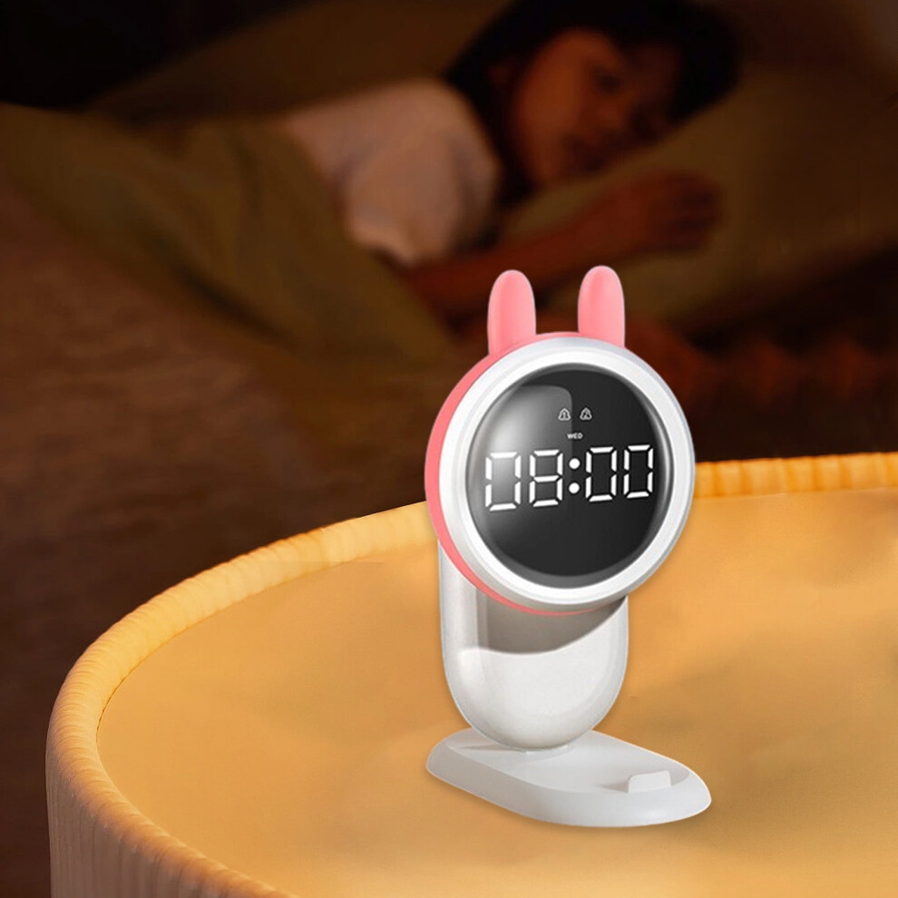 (Pink) Children's Led Creative Cute Alarm Clock Wake Up Light Light Alarm Clock