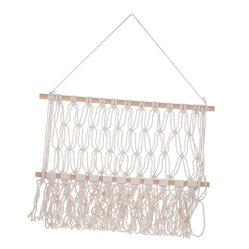 DECORNIJIA Handwoven Cotton Rope Wall-mounted Storage Rack with Tassel Pendant, Macrame Woven Tapestry Bookshelf for Children’s Room Nursery Toy Organization, Nordic Style Light Beige