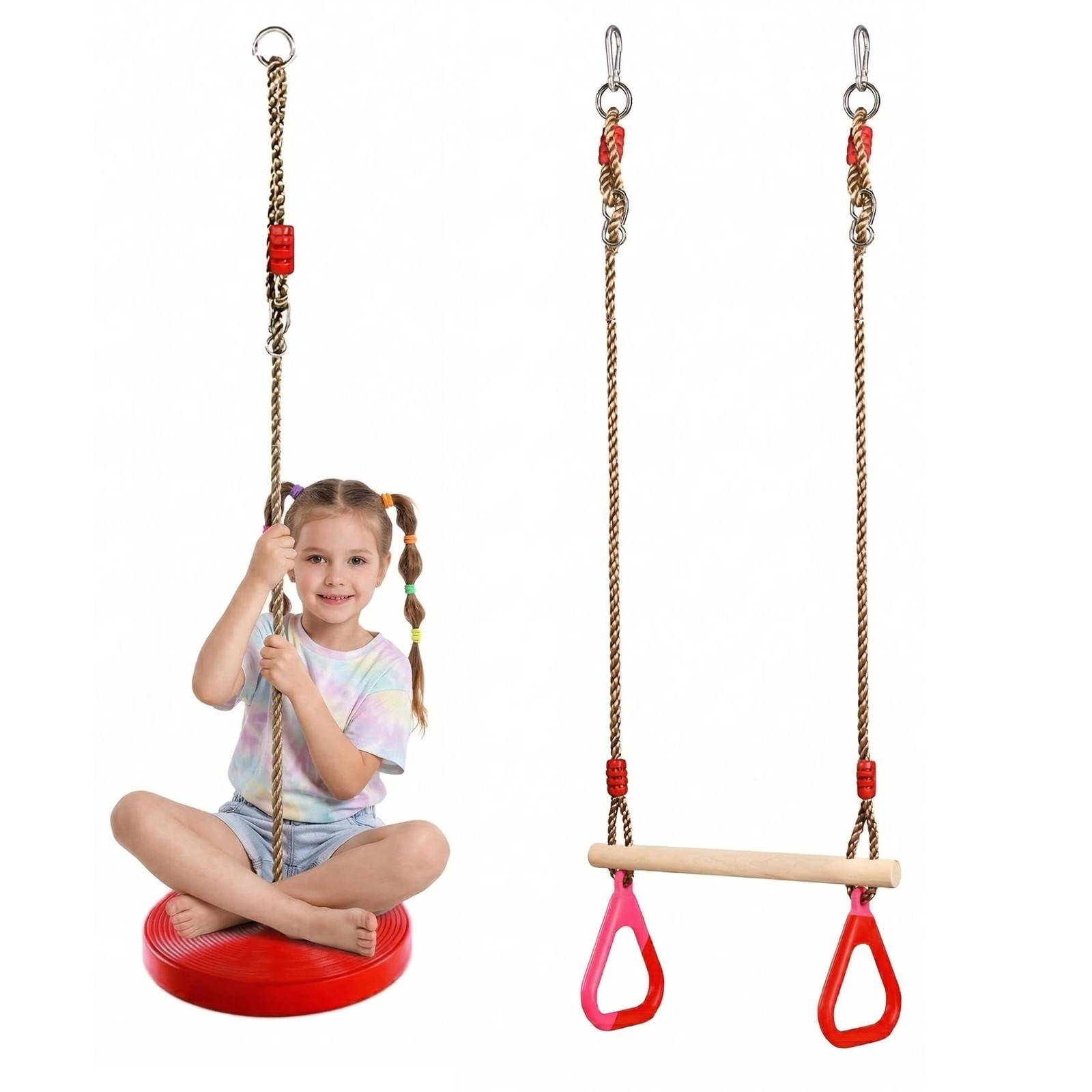 Round Swing Seat and Wooden Trapeze Bar Childrens Climbing Frame Accessories