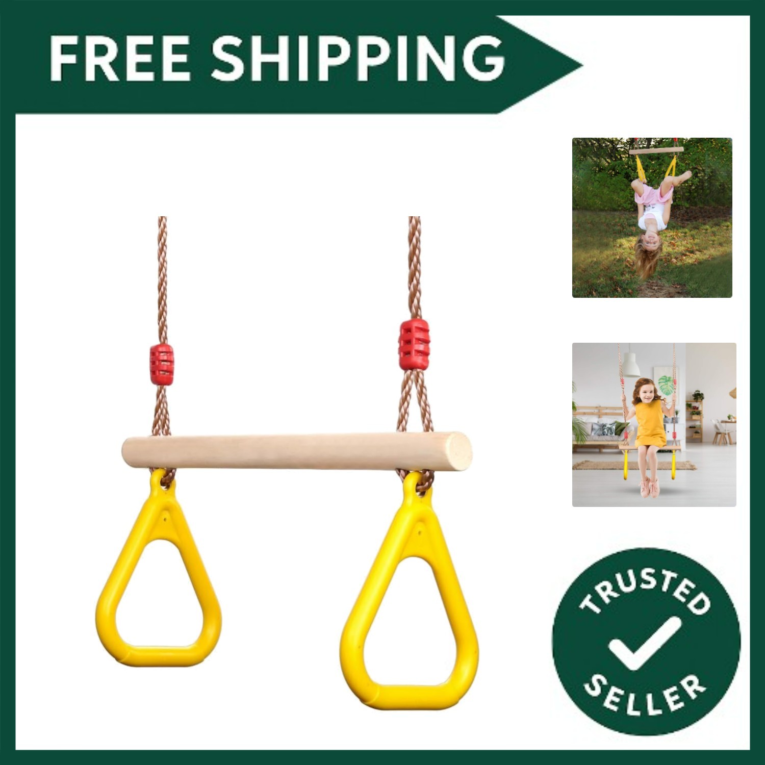 Wooden Trapeze Swing Bar with Gym Rings for Children's Swing Set Indoor Outdoor