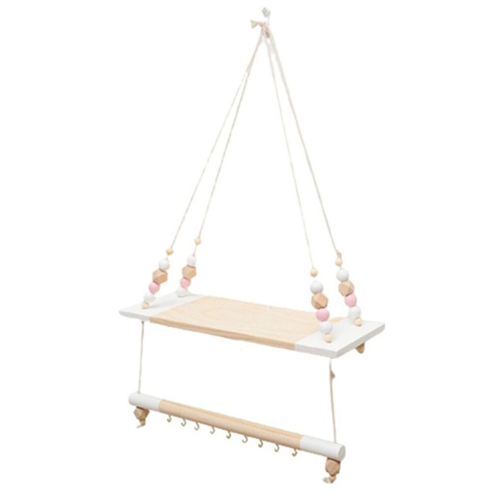 SHINEOFI Wooden Swing Storage Shelf Wall Rack Rope Hanging Multifunctional Storage for Children’s Room Bedroom Living Area
