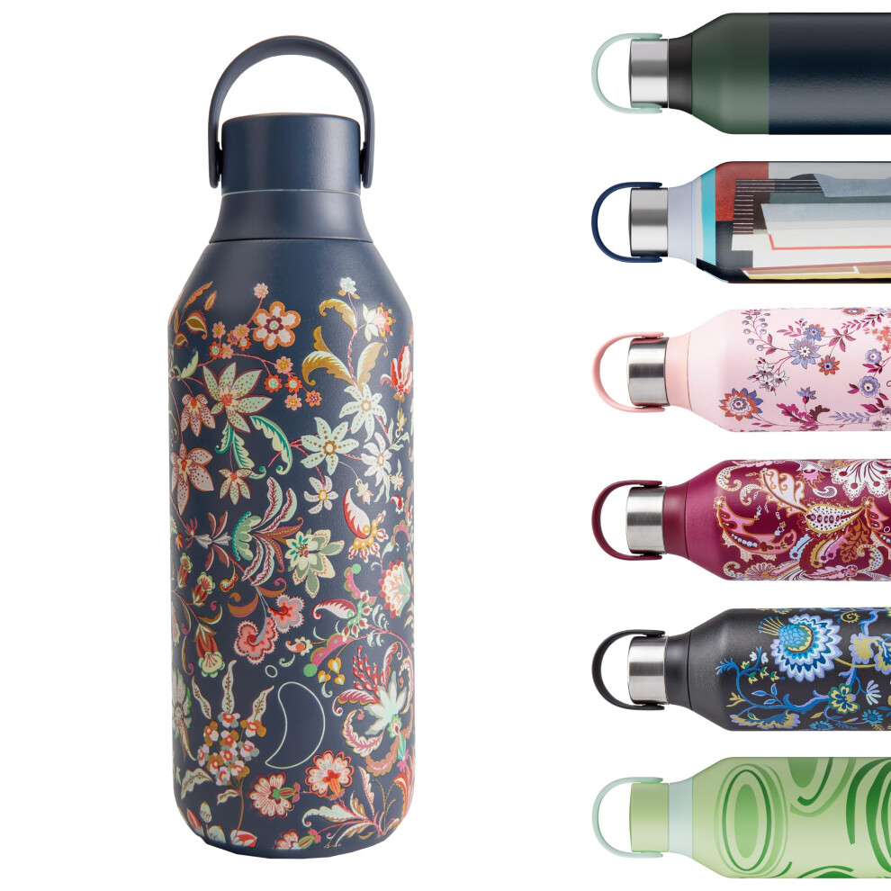 Chilly's Series 2 Water Bottle - Vacuum Insulated Stainless Steel Water Bottle with Soft Collar & Carry Loop, Thermal Flask For Hot & Cold Drinks - Leak Proof, No Sweat - Brighton Blossom, 500ml