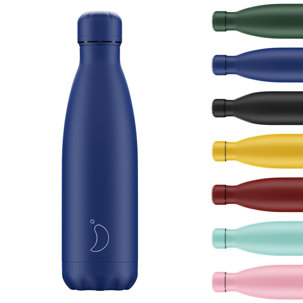 Chilly's Original Water Bottle - Vacuum Insulated Stainless Steel Water Bottle, Reusable Thermal Flask for Hot & Cold Drinks - Leak Proof, No Sweat - Matte - All Blue - 500ml