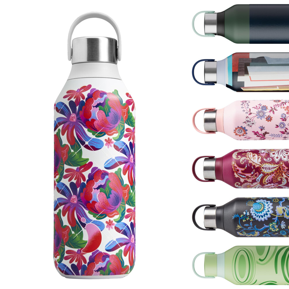 Chilly's Series 2 Water Bottle - Stainless Steel Thermal Bottles with Double Wall Vacuum, Soft Collar & Carry Loop - Brighton Blossom, 500ml