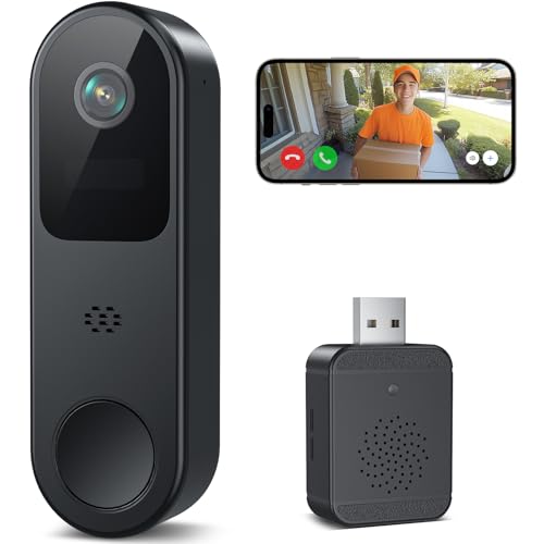 AUE Video Doorbell Camera Wireless, 2K HD Safe Doorbell Camera with Ring Chime, Battery Operated, PIR Motion Detection, Night Vision, 2-Way Audio, 2.4Ghz WiFi, Cloud Storage, Works with Alexa