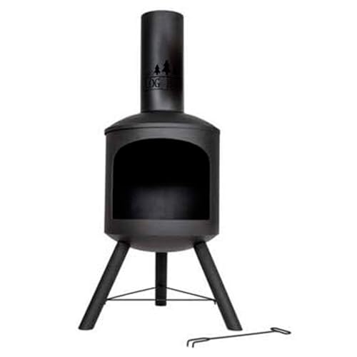 Log Barn Fire Chiminea for Garden (43 x 43 x 118 cm). Black Steel Log Burner Outdoor with Poker. Durable, Easy to Assemble, Lightweight Wood Burner Outdoor - Genuine Log Barn Garden Chiminea