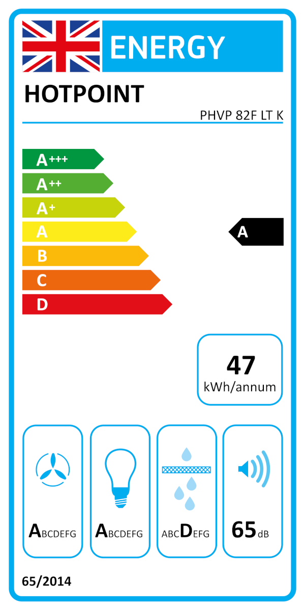 Hotpoint PHVP82FLTK 80cm Chimney Hood in Black 4 Speed Fan Touch Display