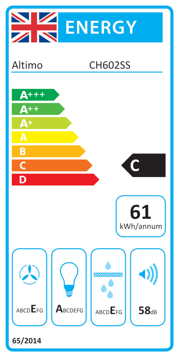 CH602SS 60cm Chimney Hood with Aluminium Filter