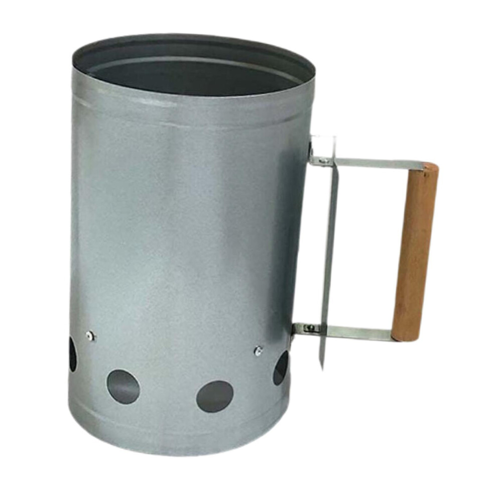 BBQ Chimney Starter Wooden Handle, Bucket-Style Charcoal Starter, Argent Finish, For BBQ Grilling, Camping And Outdoor