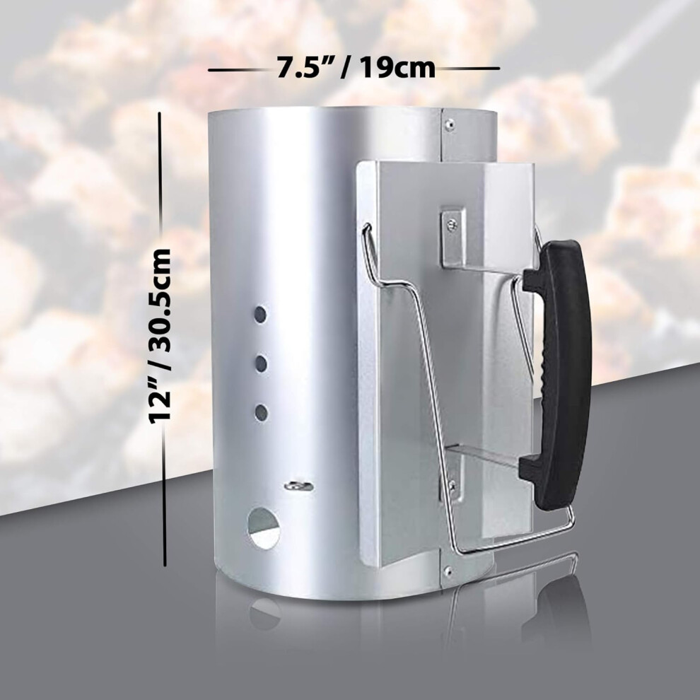 Stainless Steel Rapid Fire Charcoal Chimney Starter for Outdoor Cooking - Heat Resistant Black Can